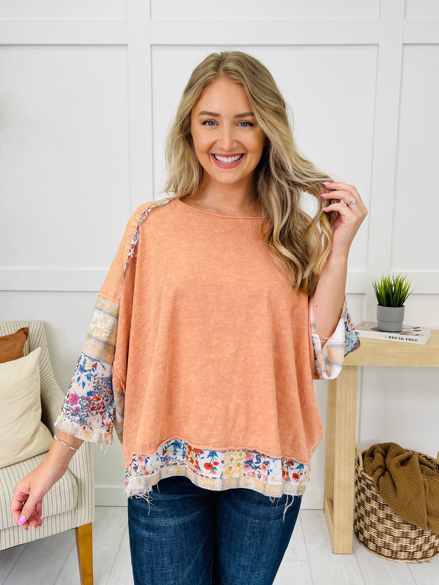 This top brings instant laid-back charm with its breezy, relaxed silhouette that’s perfect for everyday wear. The colorful patchwork sleeves add a playful twist, while the raw-edge hem lends just the right amount of casual edge. Pair it with your favorite jeans or leggings for an easygoing look that stands out.