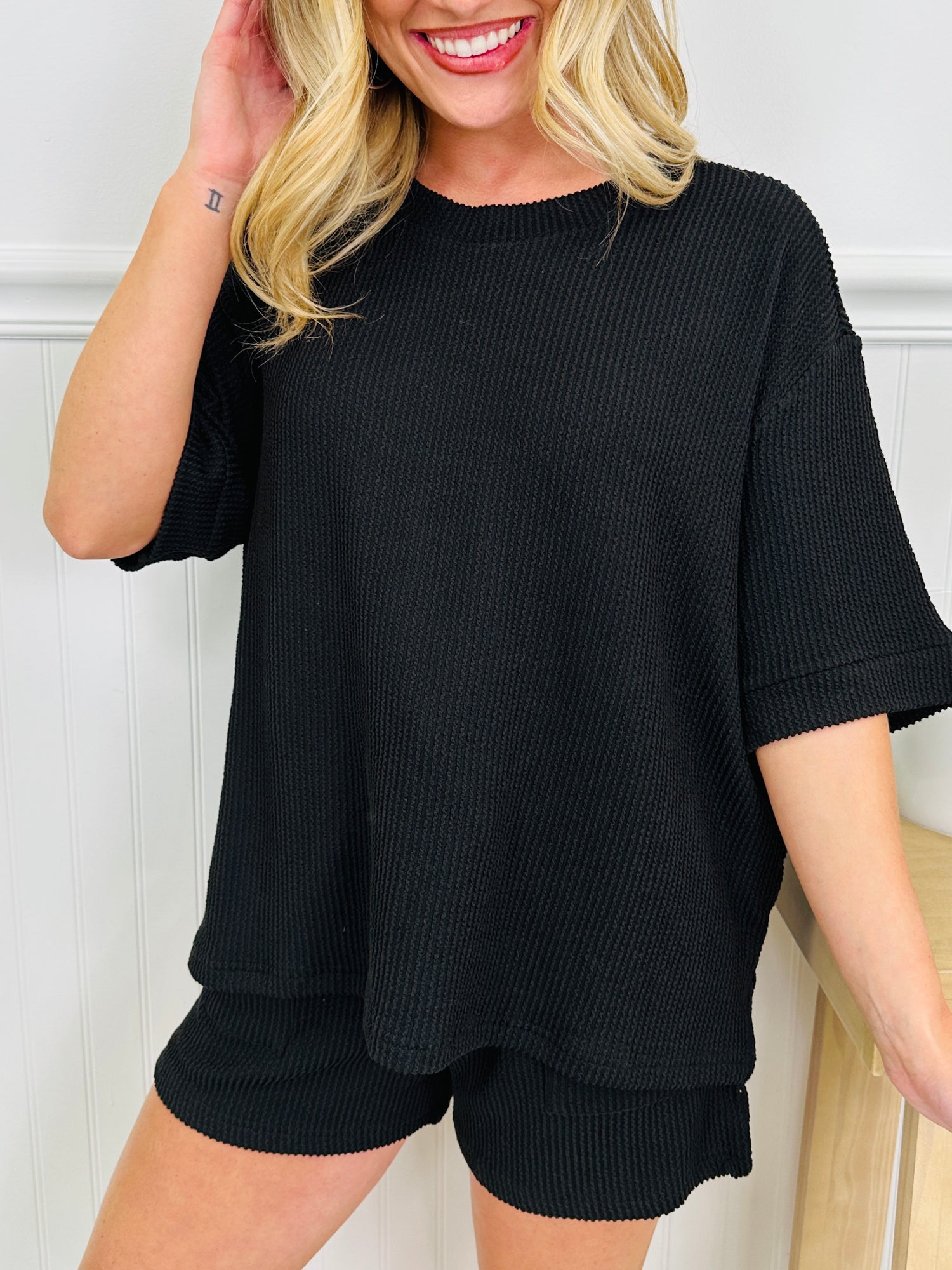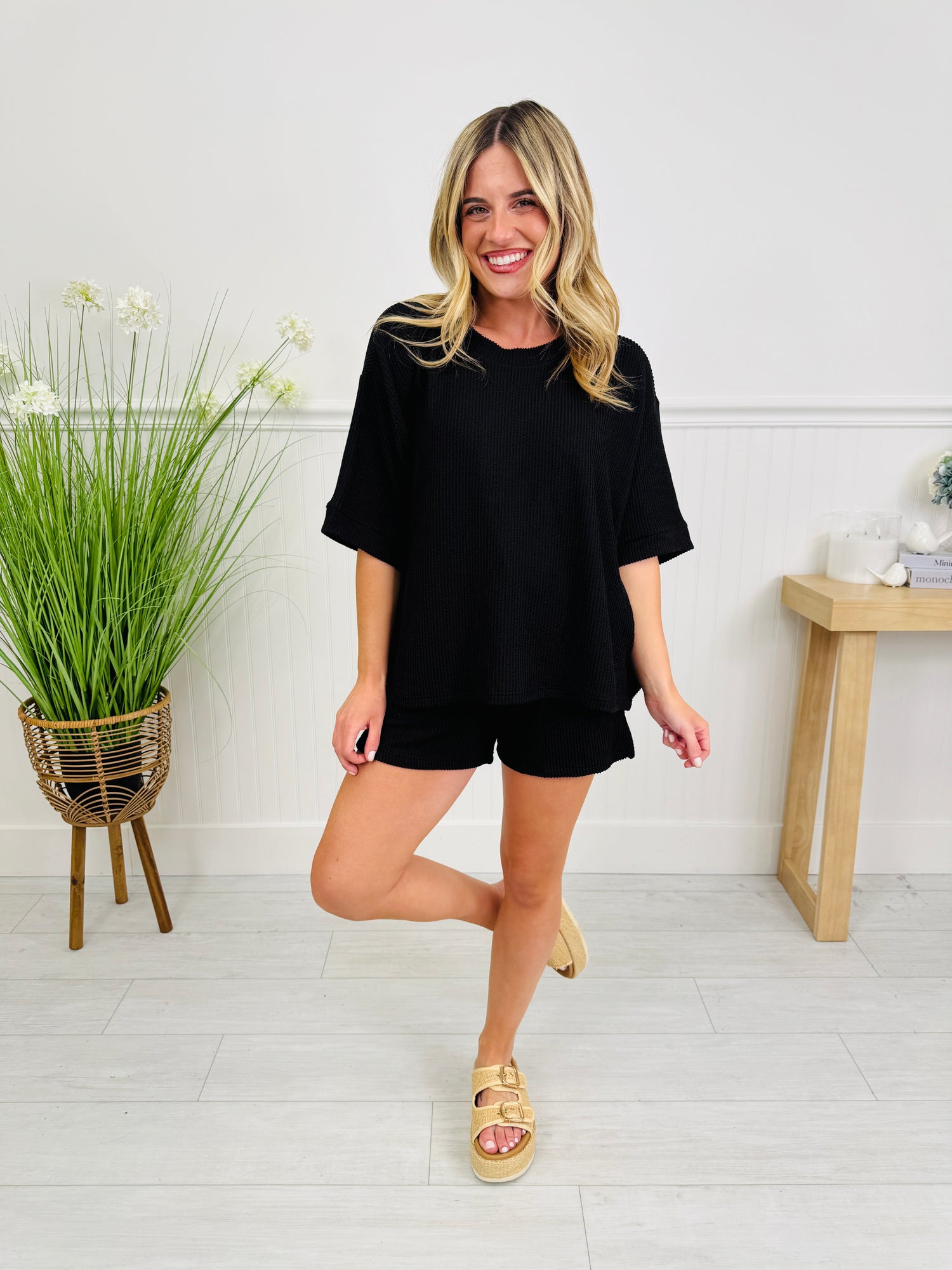 Set The Vibe This Season in this new spring arrival that you will reach for on repeat this season. It's made from our best selling raised rib material that our customers rave about. It's buttery and brushed soft, stretchy, and so comfortable.