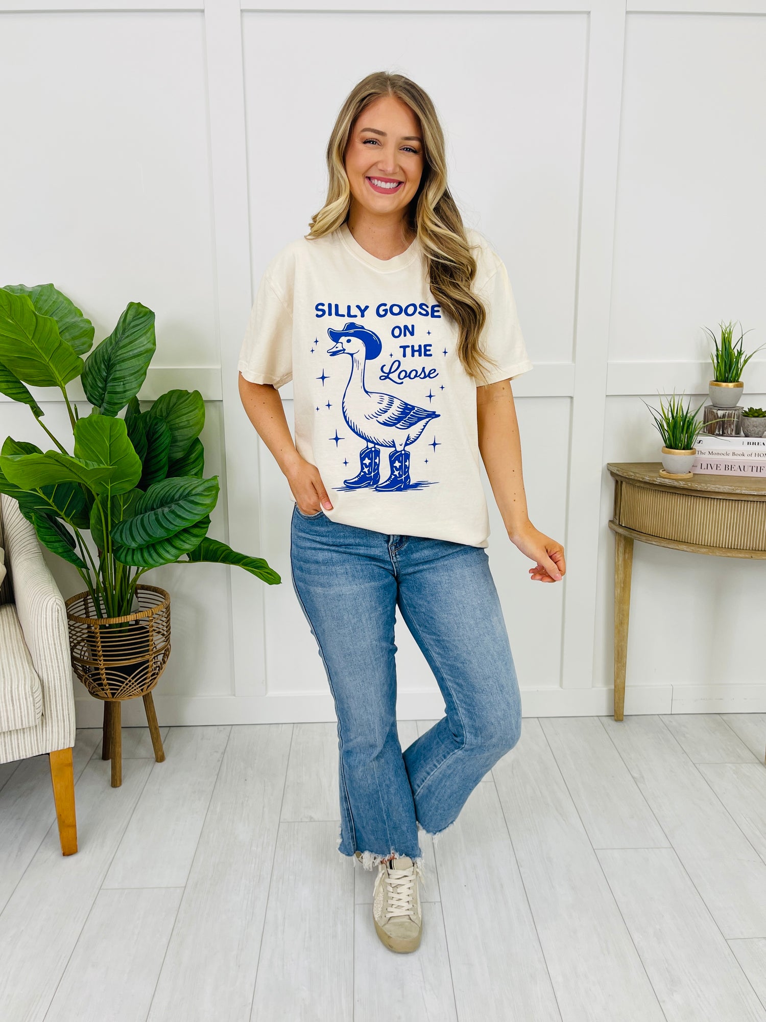 Bring a little playful personality to your everyday look with the Silly Goose tee — a fun, lighthearted design that doesn’t take itself too seriously. The charming goose graphic paired with the “on the loose” wording adds a whimsical touch that feels cute, quirky, and totally wearable.