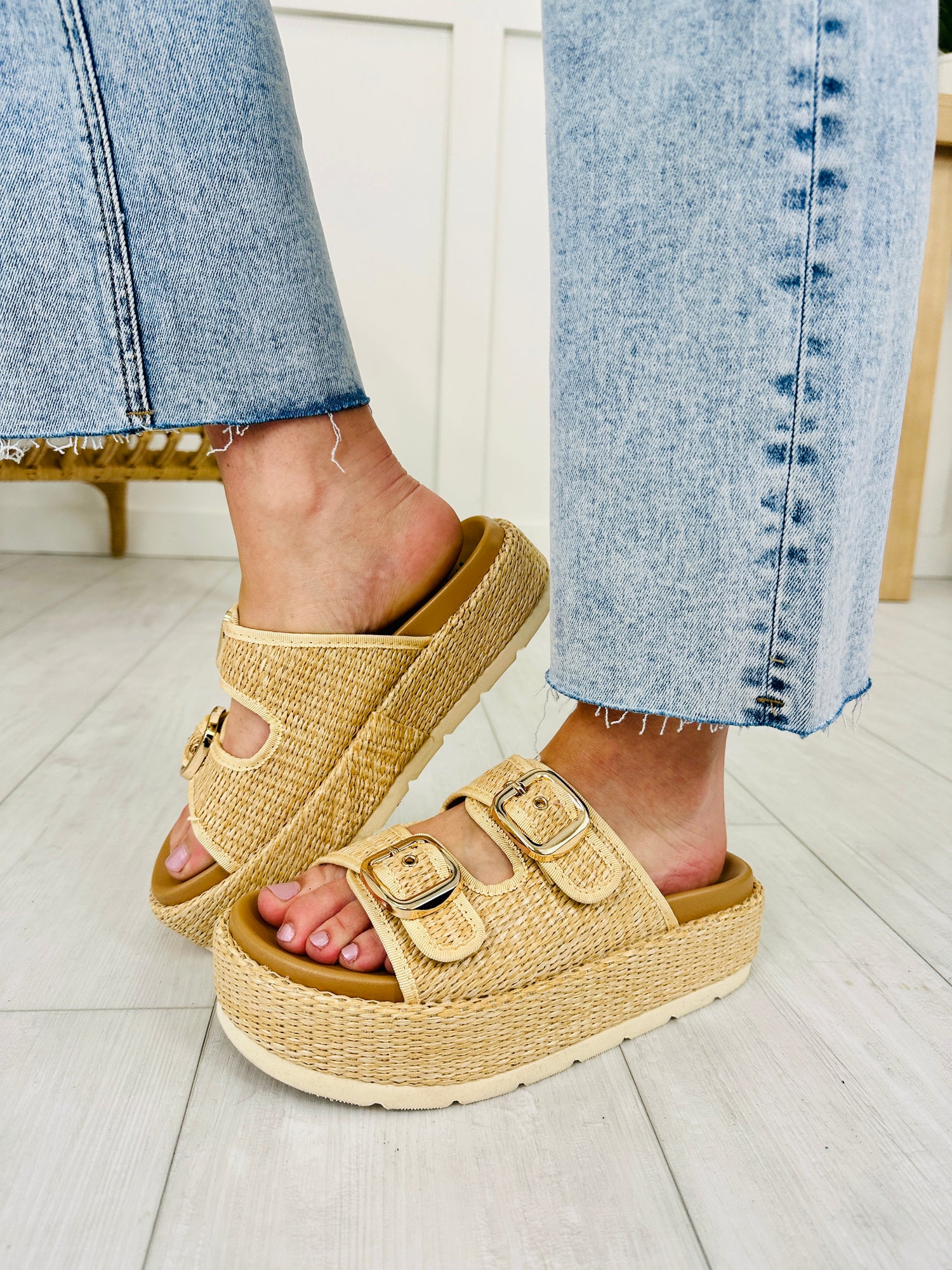 These new trendy platform sandals are a step above the rest! They feature a trendy Raffia material in an on trend platform style sandal. These sandals feature a squishy footbed and adjustable buckles for ultimate comfort. These new platform sandals will match everything in your spring in summer wardrobe from jeans to shorts to dresses! Don't miss these!