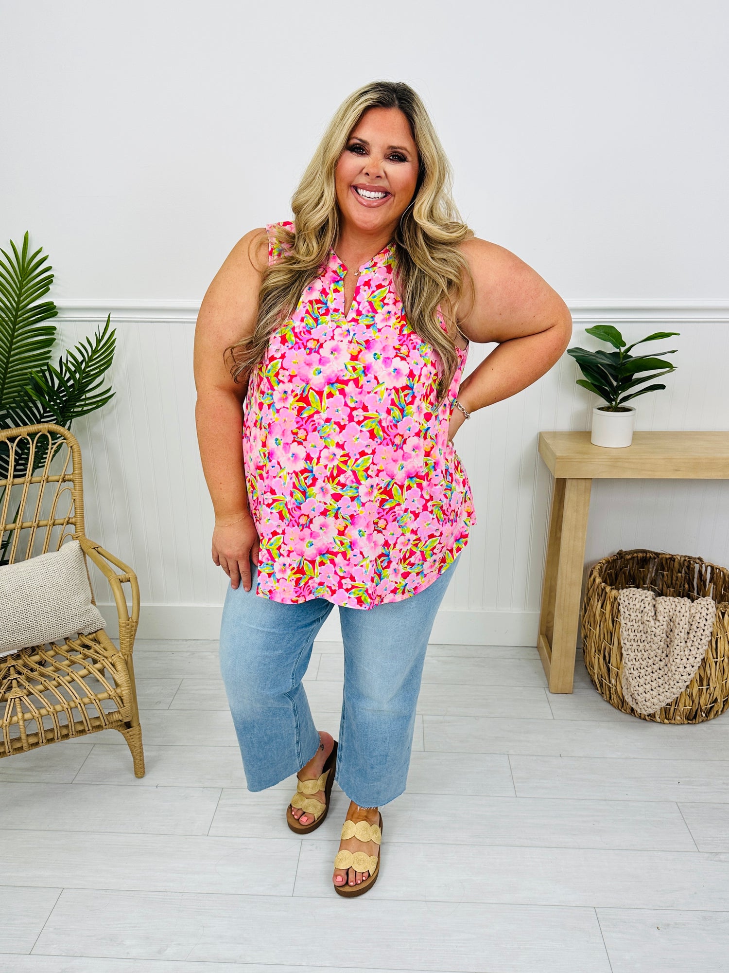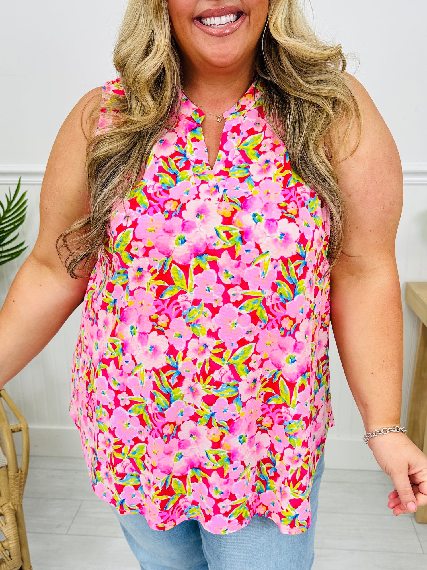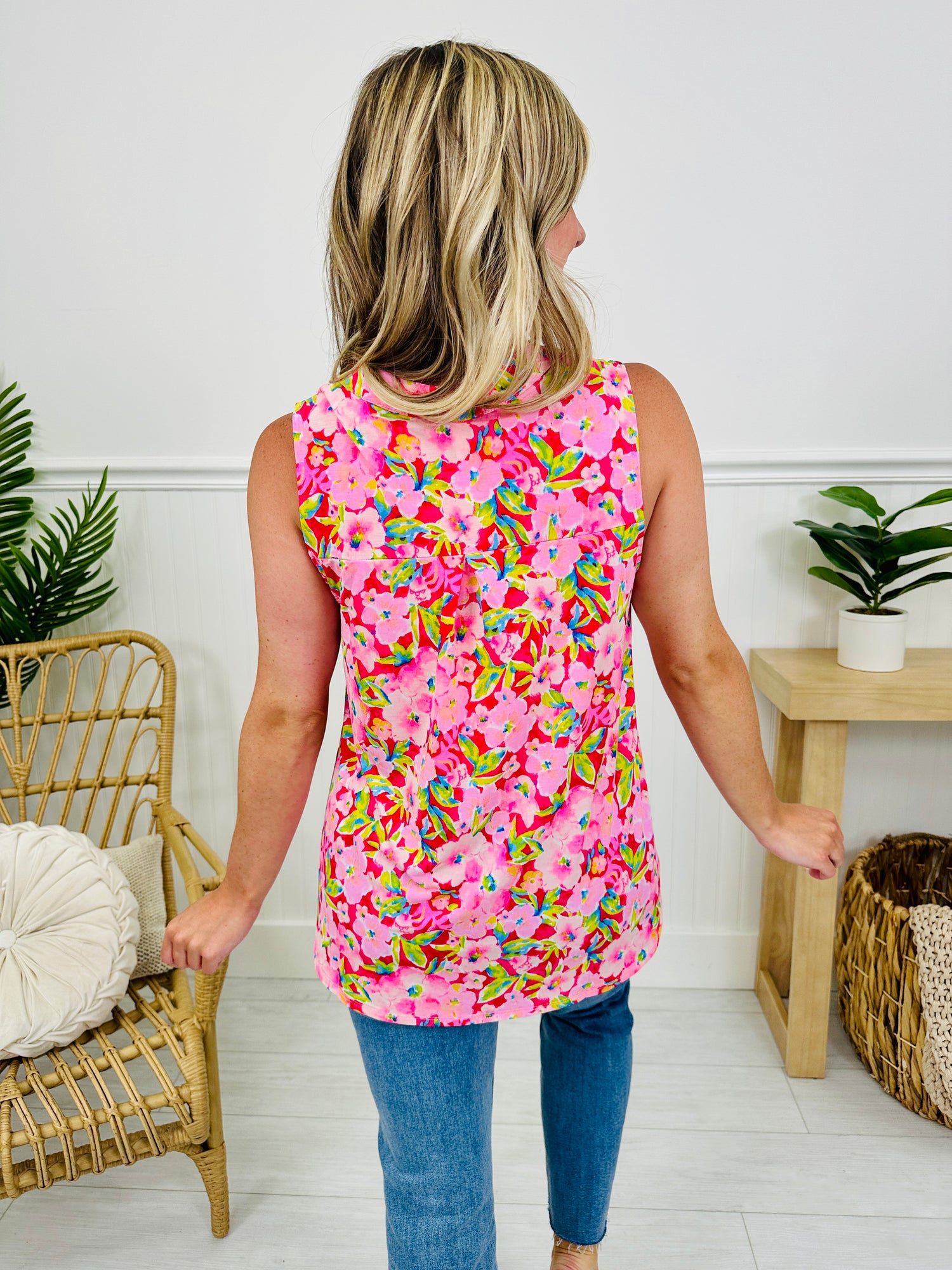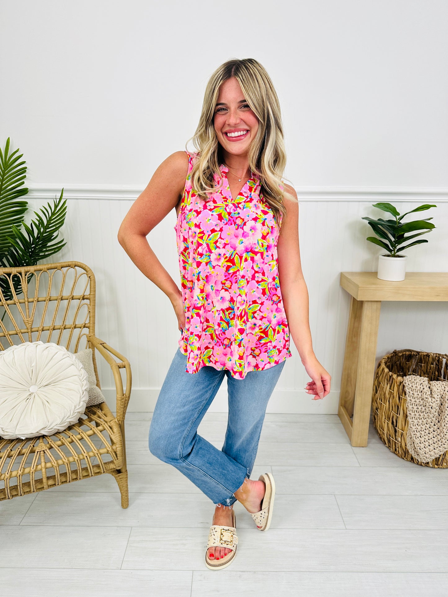 This best selling tank top is perfect for sunny days and is now available in a brand new, bold print that we can't get enough of! This tank top is 100% wrinkle free, which makes it easy to get up and go this summer or to throw it in a beach bag or suitcase when needed.