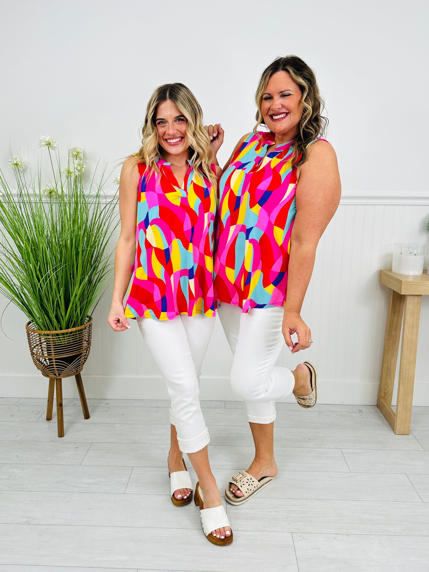 This best selling tank top is back in new prints for spring and it's giving sunshine energy vibes. It brings vibrant color and effortless style to your everyday lineup. Designed in a cool-to-the-touch, wrinkle-free fabric, it keeps you looking polished and feeling comfortable from morning plans to sunny afternoon outings. Our customers rave about how comfortable and flattering this top is on every single body type.