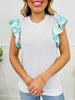 This top is giving effortless charm with a dash of warm-weather energy! The printed fluttery sleeves add a playful floral pop, while the soft, textured fabric keeps things extra comfy. Whether you’re pairing it with shorts for a sunny day out or dressing it up with your favorite denim, this piece makes styling a breeze.