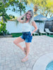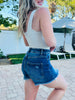 The fabric on these new shorts is MAGICAL.  Featuring 2% spandex, these shorts have incredible stretch and recovery, which means they hold their shape all day long.  They are buttery soft and you will never want to take them off! They feature a high rise that holds everything in and a modest inseam.  We love the dark and dreamy wash and grain.  These are a sweet summertime must have!