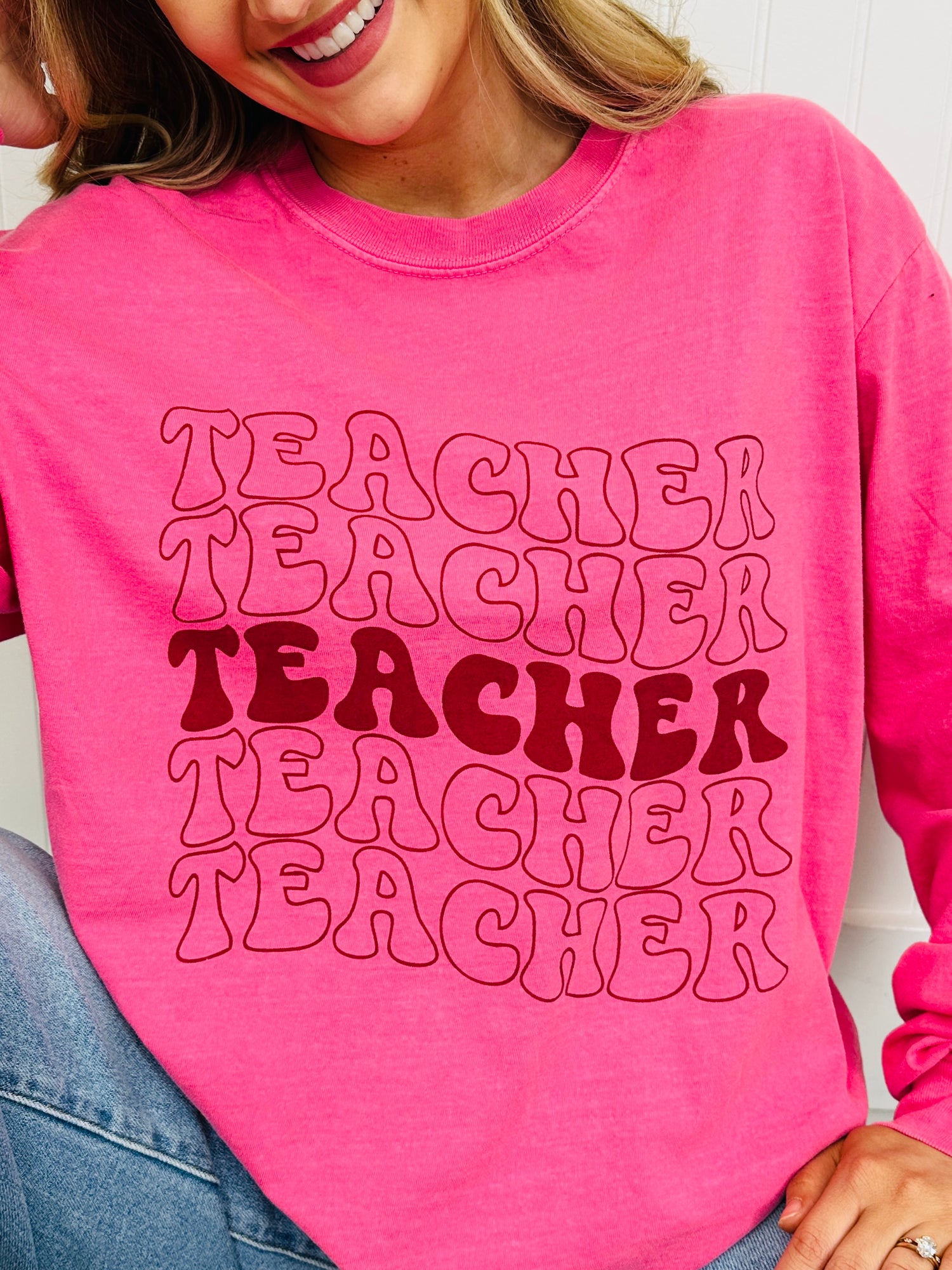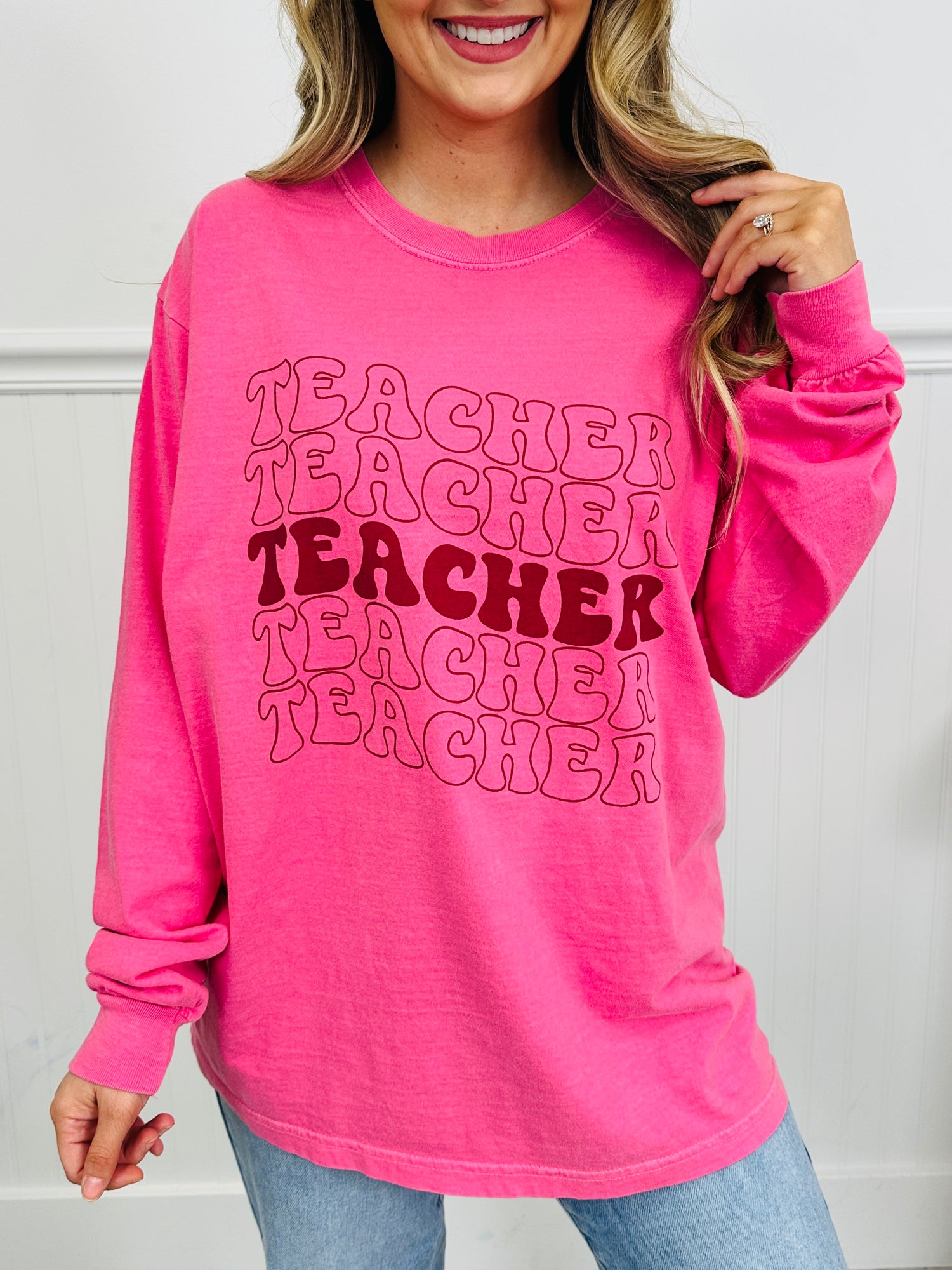Teacher Graphic Long Sleeve Tee in Multiple Colors