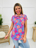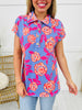 Bring a fresh twist to your casual wardrobe with this vibrant collared top featuring a lively mix of stripes and oversized floral blooms. The button-up neckline and structured collar give it a sporty edge, while the colorful pattern keeps things fun and eye-catching. Perfect for sunny day outings or everyday errands, it’s a statement piece that’s easy to wear.