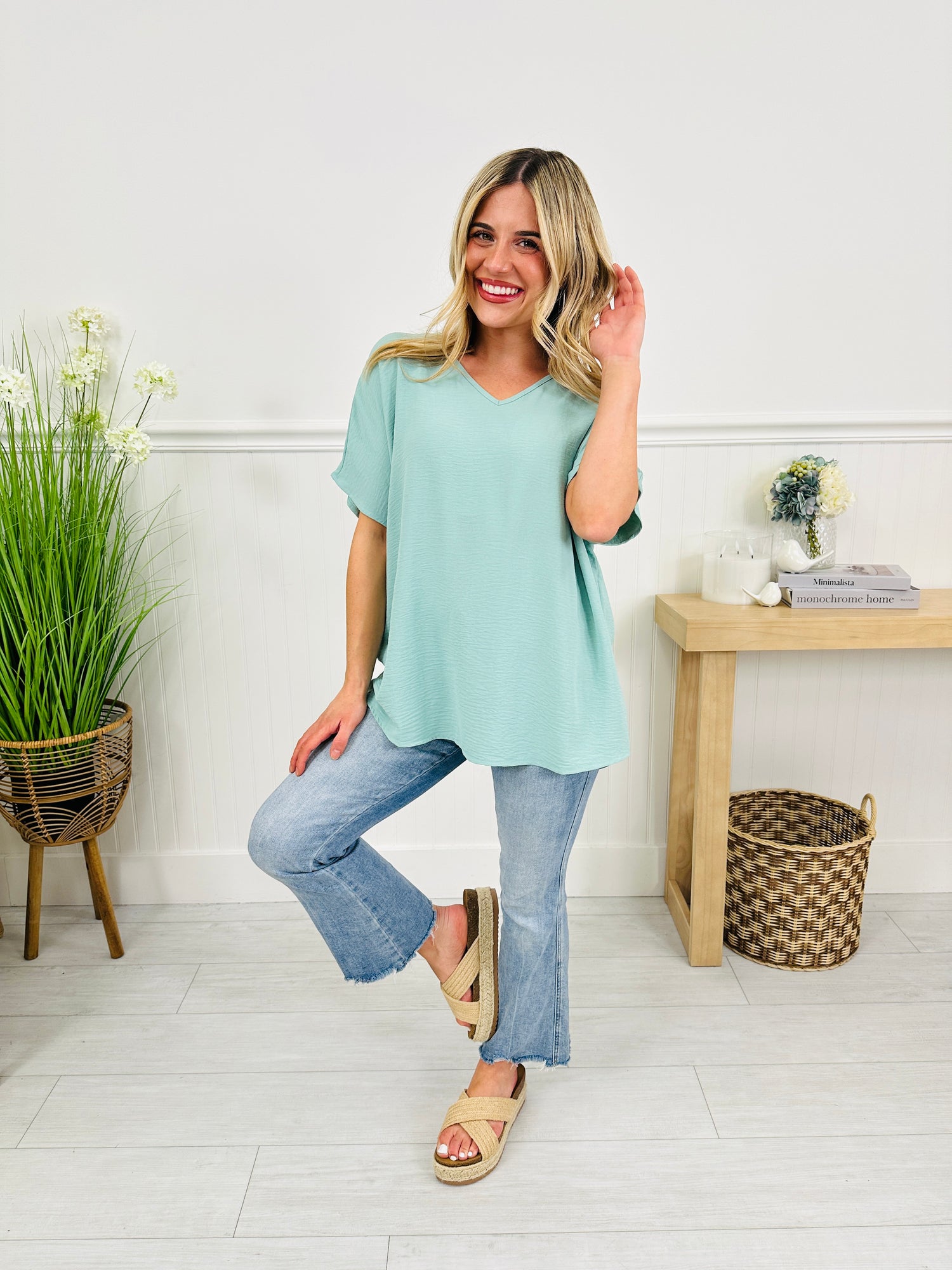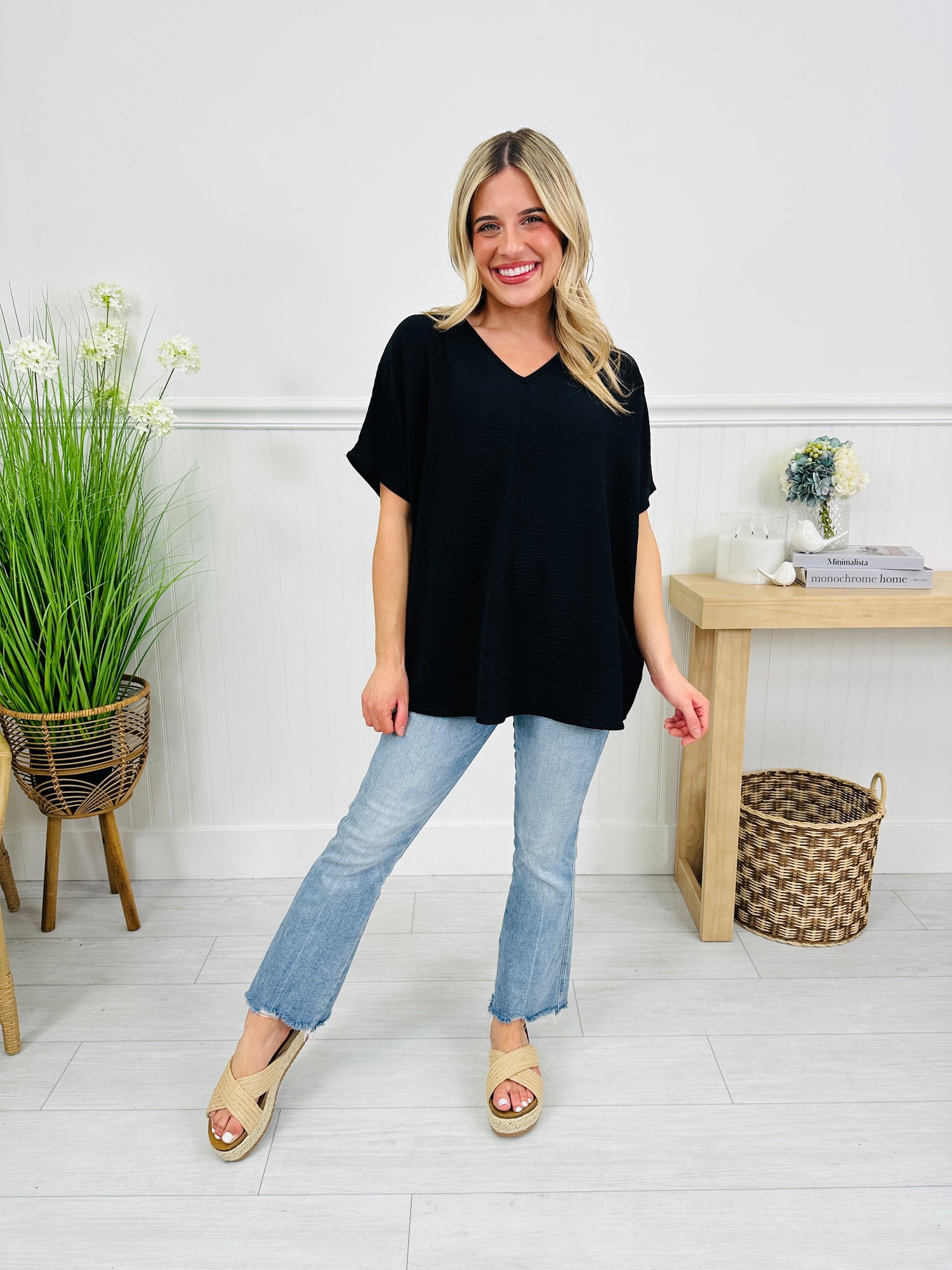 This best selling spring top is back in fresh new colors and ready for the season ahead. Designed with a lightweight airflow fabric, it offers an easy, breathable feel that’s perfect for warmer days while still layering beautifully during pre-spring weather. The flowy, flattering silhouette drapes effortlessly without clinging, making it a comfortable and confidence-boosting option for everyday wear.