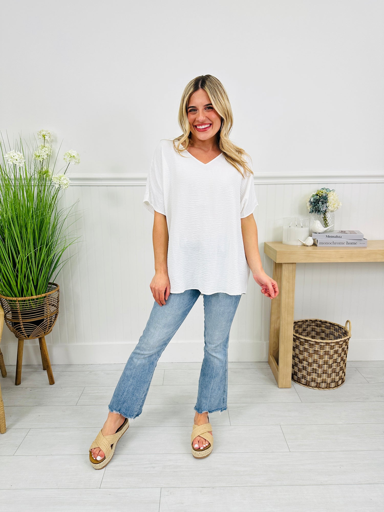 Finished with a classic v-neckline and a relaxed fit, this top is incredibly versatile and easy to style. Dress it up with denim and wedges or keep it casual with shorts or leggings for an effortless look. A true closet staple that works for so many occasions, this is one you’ll reach for again and again all spring long.