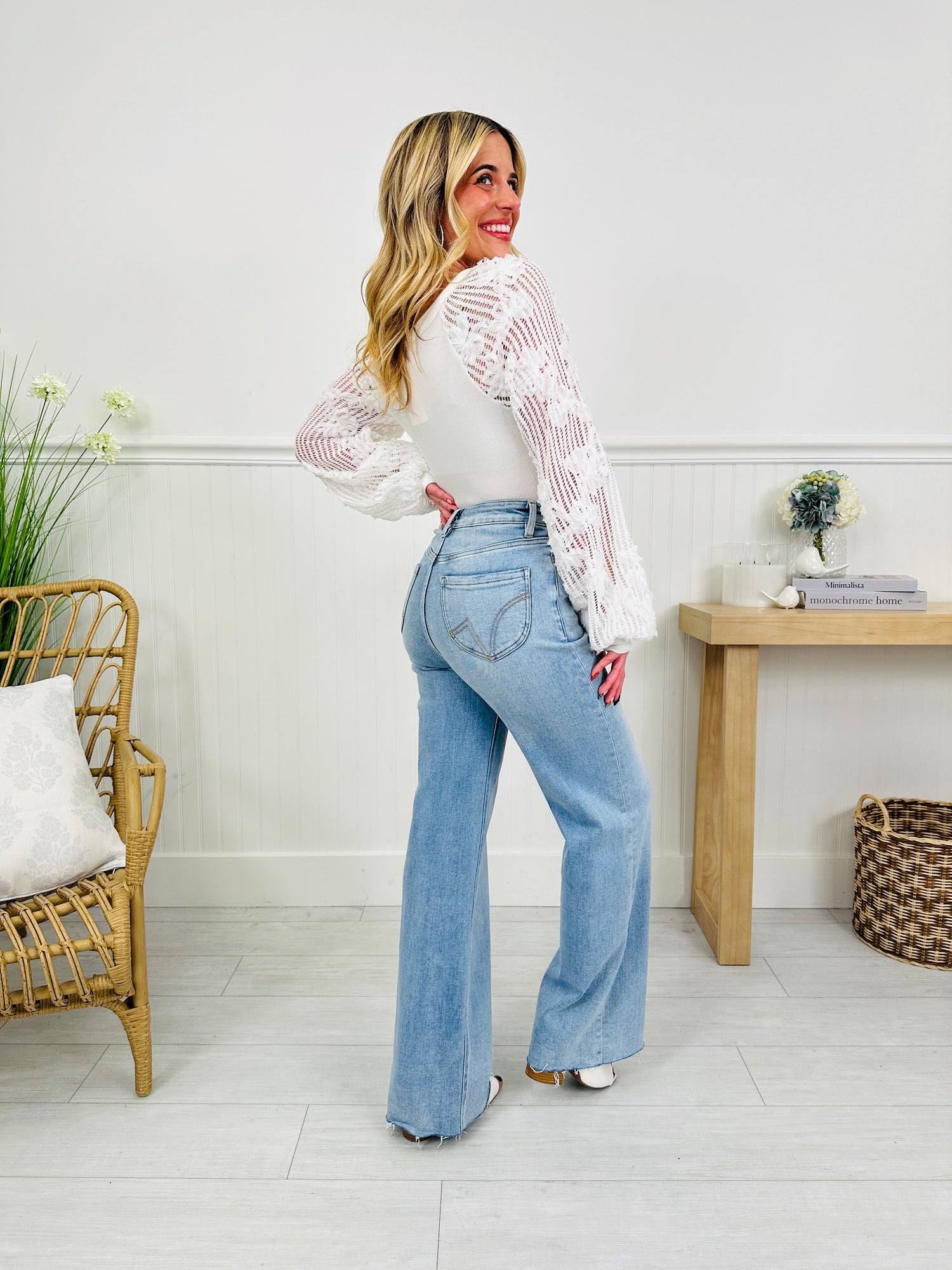 The next chapter in your wardrobe is here with these new wide leg jeans that are perfect to transition into spring. Wide leg style is in and you'll be reaching for these on repeat this season. These jeans feature our viral tummy control panel that is going to suck you in and slim you out in all the right places for a boost of confidence that you didn't know was possible! Every woman of every shape and size looks (and feels) amazing in these jeans.