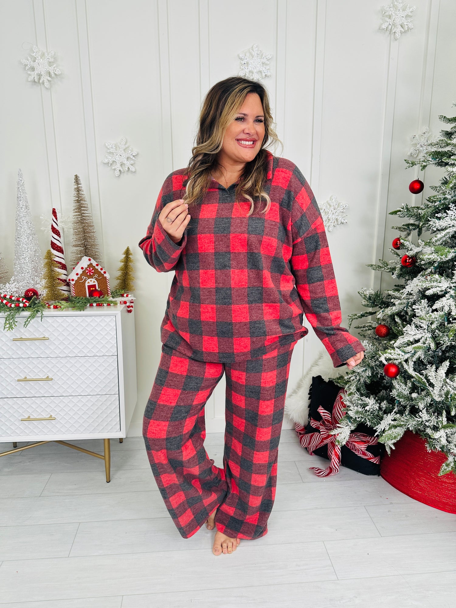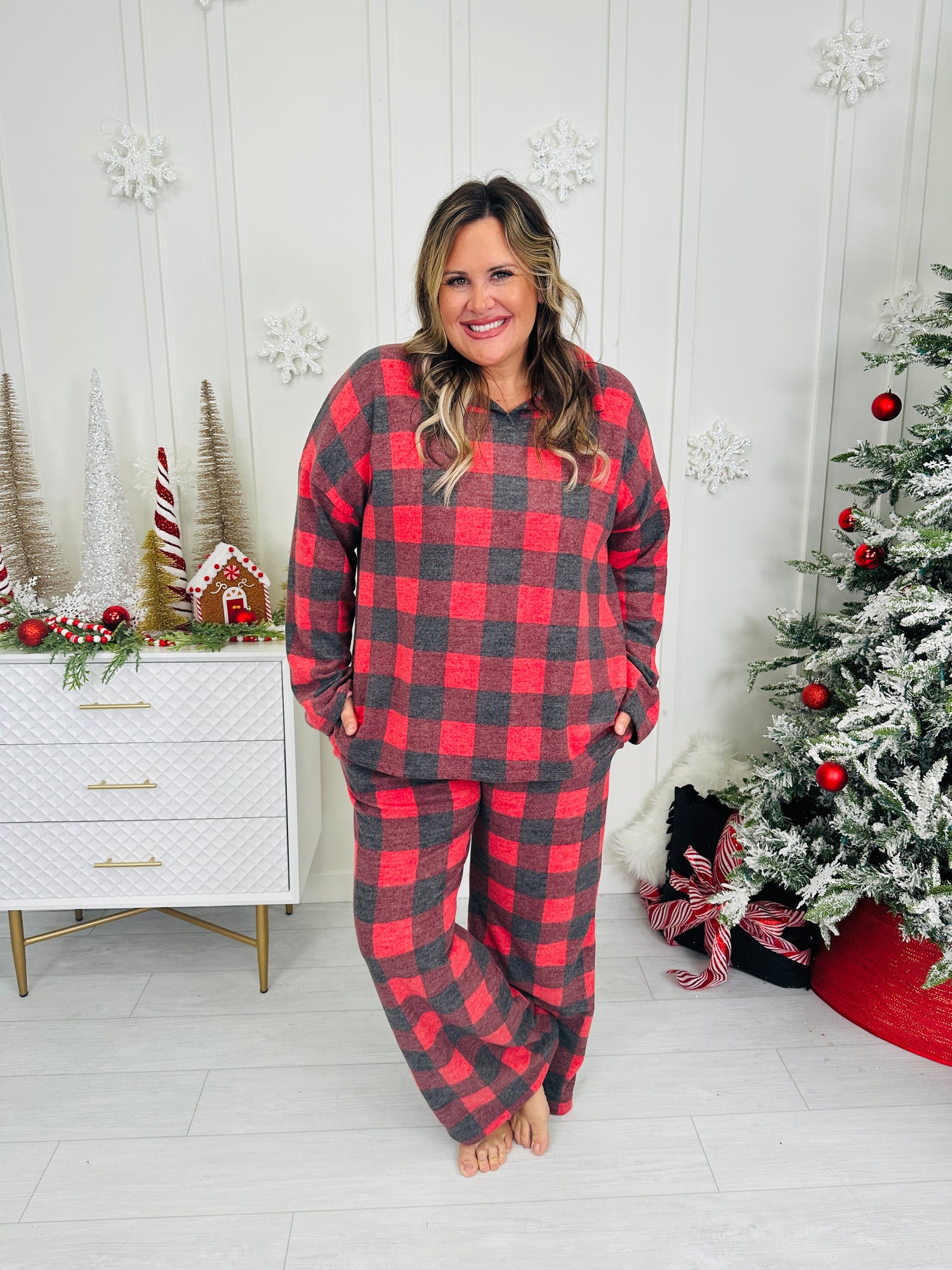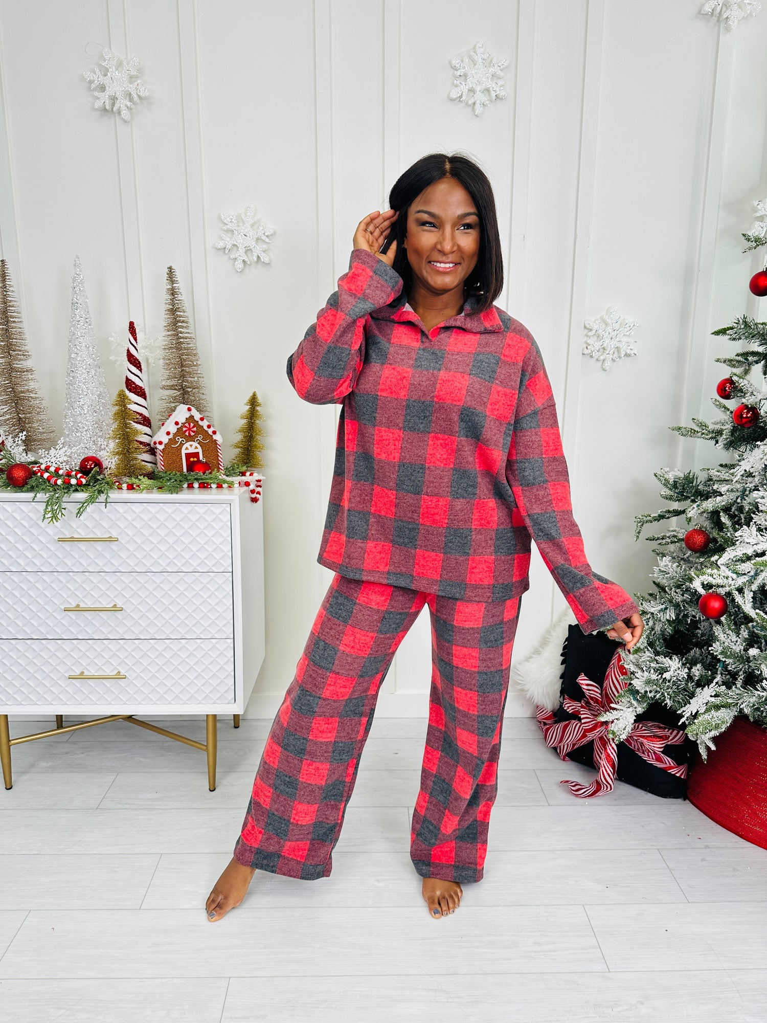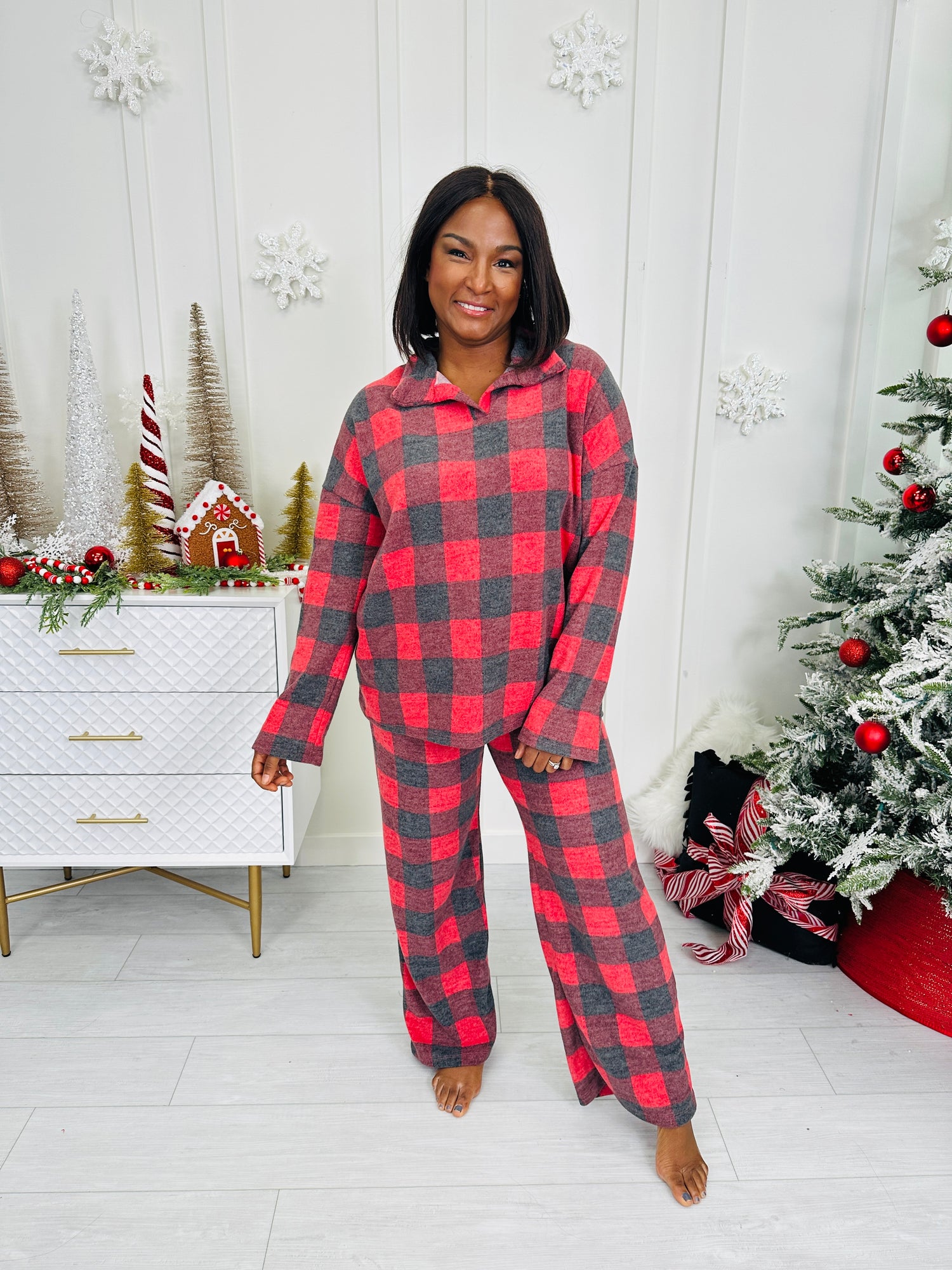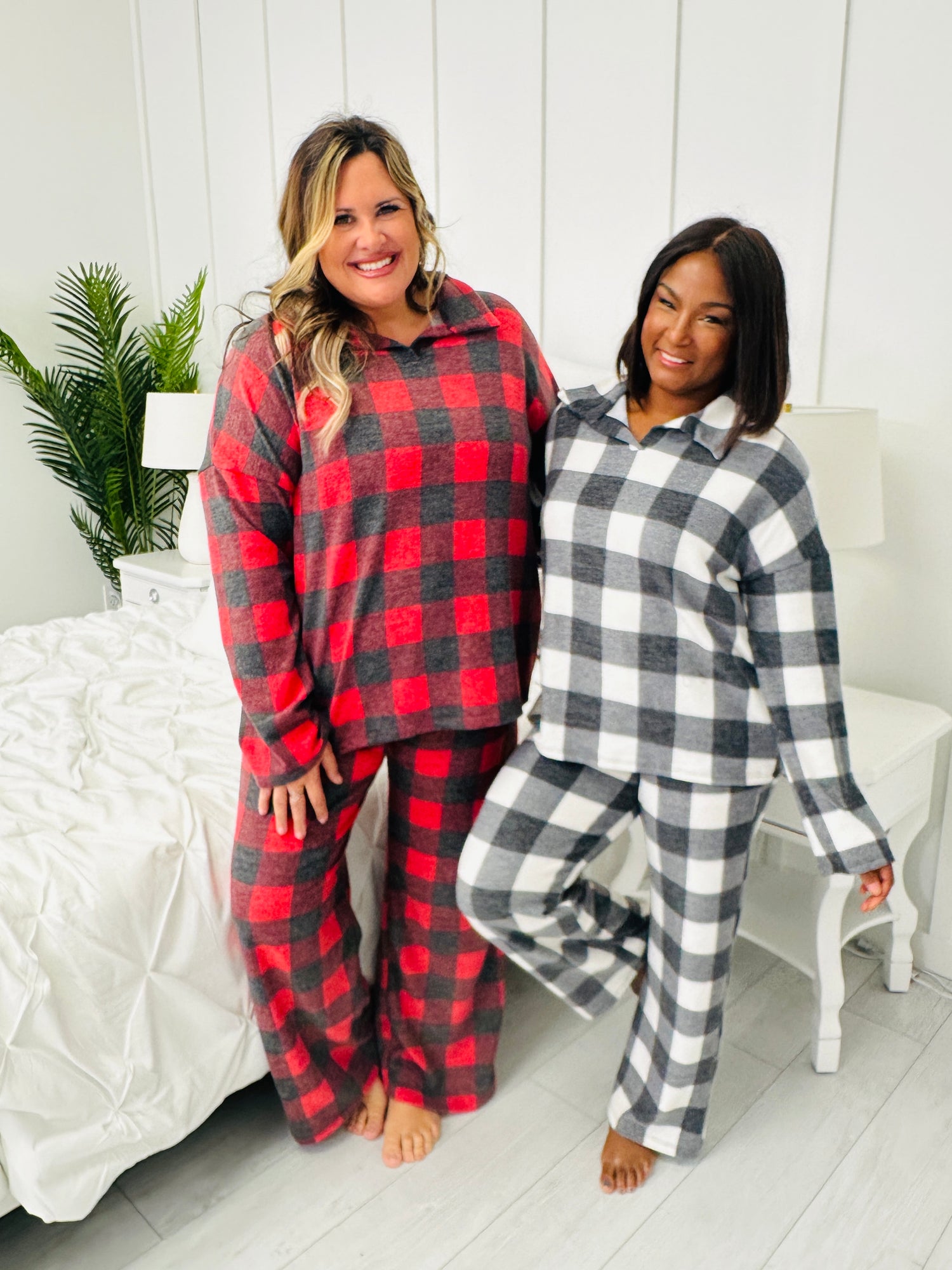 This cozy pajama set features a warm plaid design in two stylish color options, making it the perfect loungewear for those chilly nights. The relaxed, comfortable fit paired with soft, breathable fabric ensures you'll feel cozy all evening long. Whether you're curling up for a movie night or enjoying a lazy day, this set combines comfort and style effortlessly.
