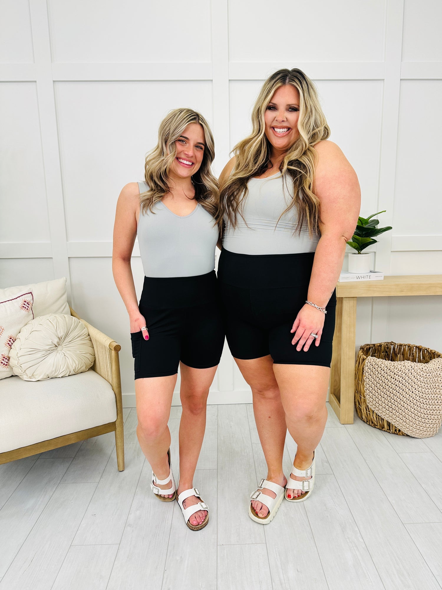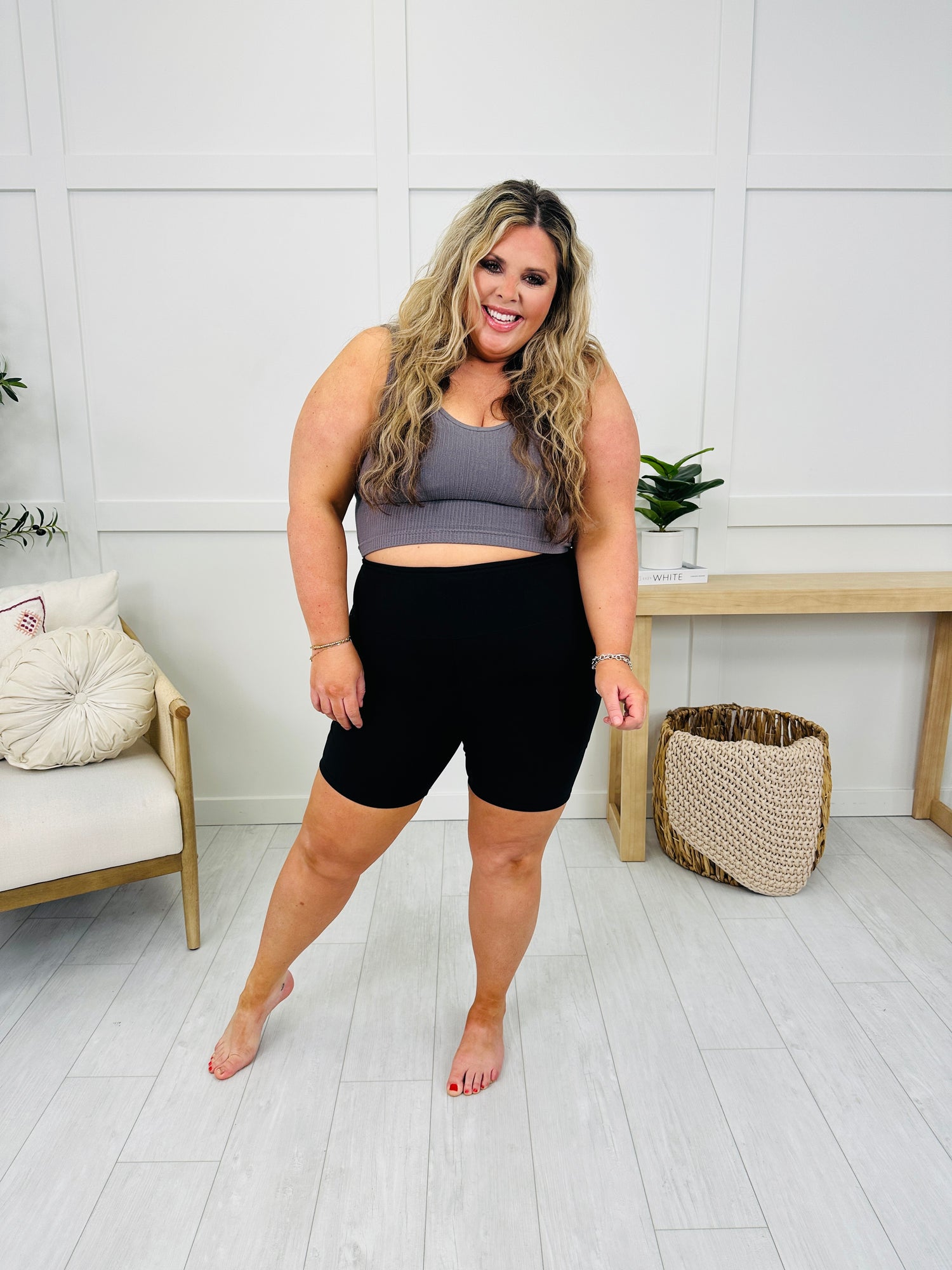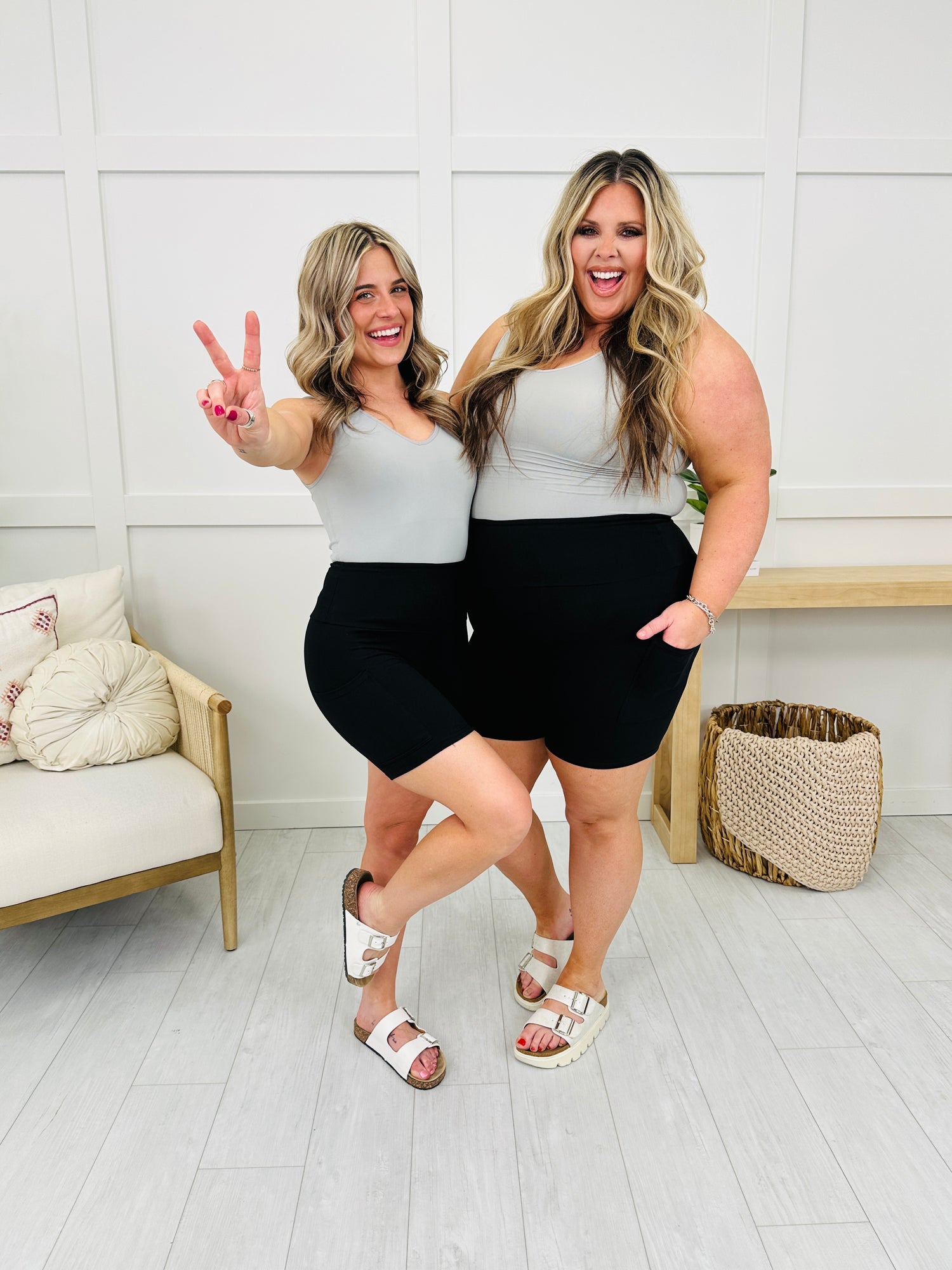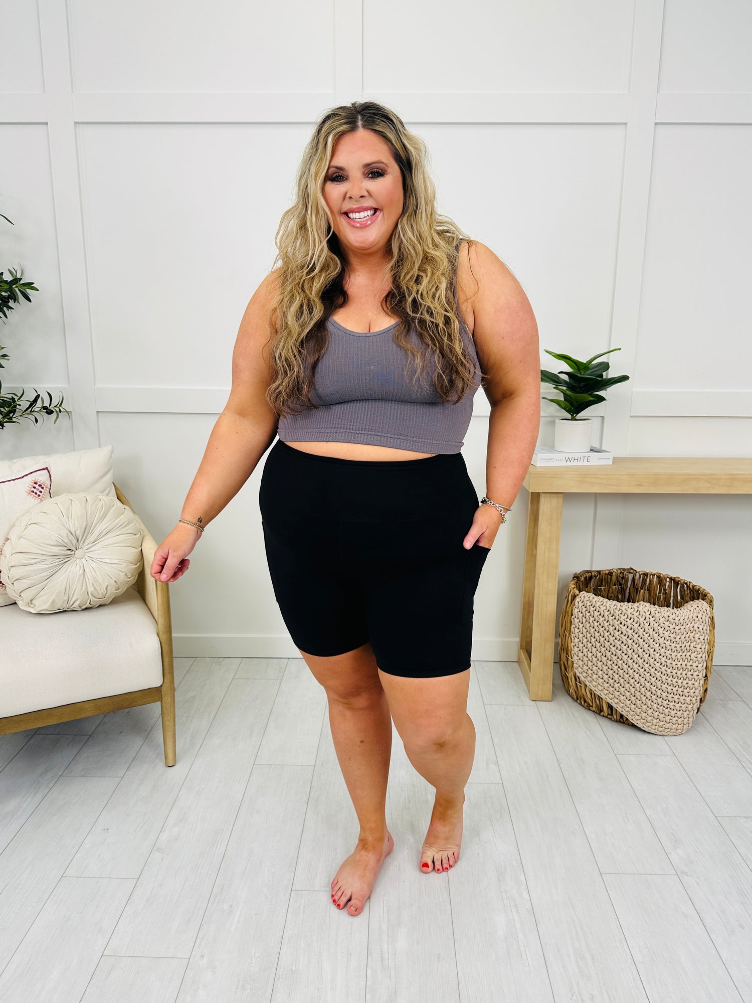 The shorts version of our best selling tummy control leggings are finally here and just in time for warm weather! These buttery soft leggings biker shorts feature a high rise wide waistband with tummy control! Did we mention they have pockets? The modest inseam will work for every woman sizes 2-26. These are a warm weather staple!