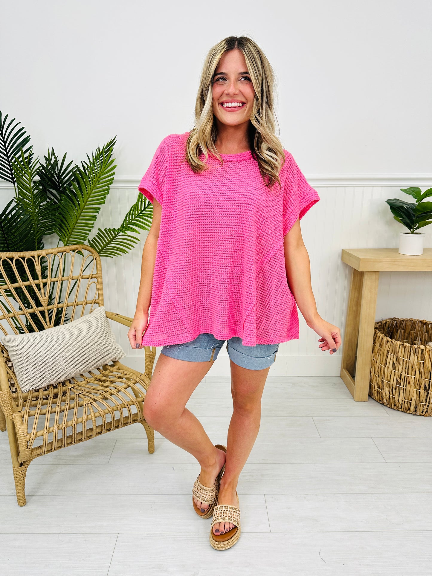 Summer is here and this is the perfect top to wear under the sun all summer long! Our best selling fabric is back in a new silhouette that we can't get enough of! It is flowy and flattering on every single body type and is a versatile top that can be dressed up or down and worn with shorts or jeans. The bright and bold colors will look amazing on your sunkissed skin, too! Grab this new arrival to wear it under the sun while you still can!