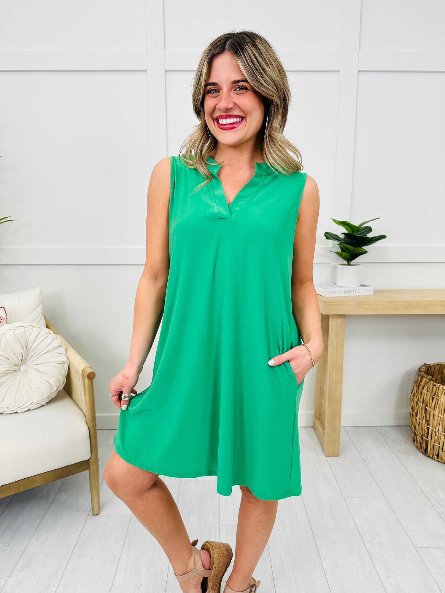 Our best selling wrinkle free material is now available in a dress and it is a summer staple. This cool to the touch material will keep you cool all summer long! The silhouette is flowy and flattering on all body types and will not cling to you! It features a v-neck line and wider straps that will hide your bra straps.  Did we mention it has pockets?  And at this amazing price, you can get multiple of these gorgeous, bold colors!