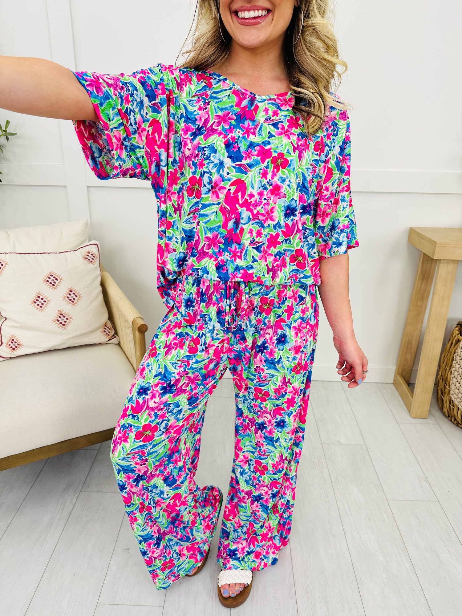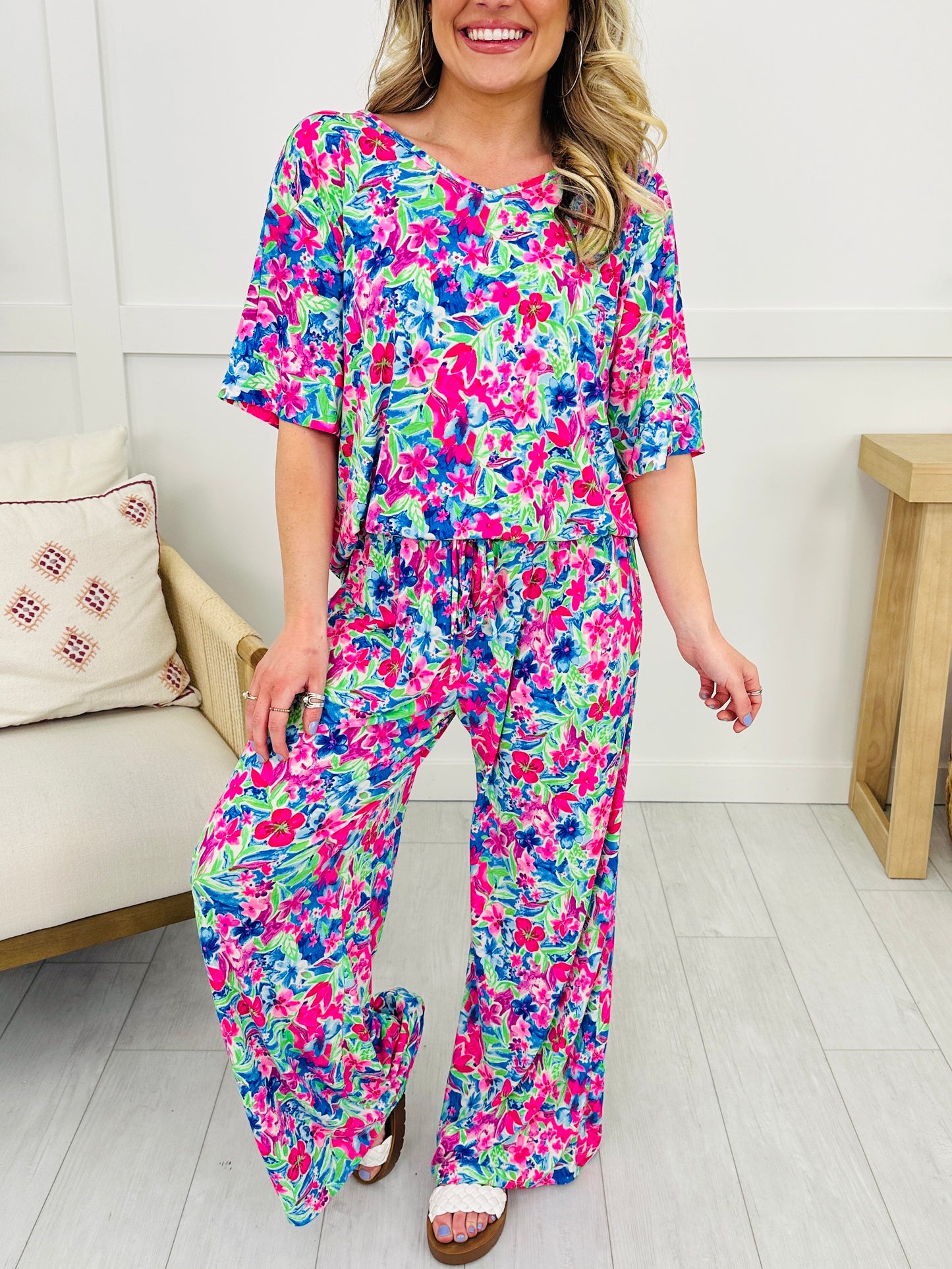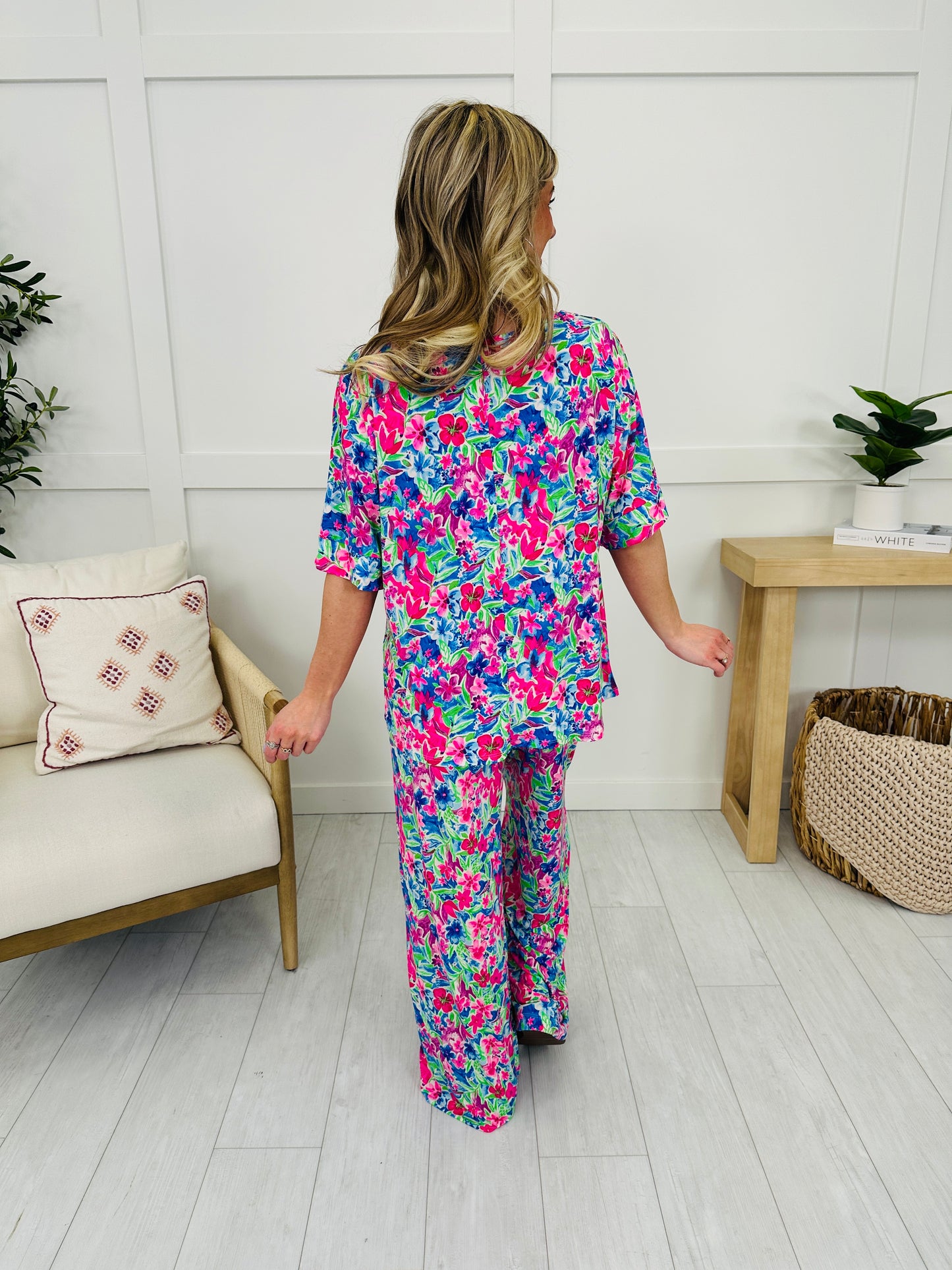 This printed set is the perfect set to wear when it's warm outside. This cool to the touch, dreamy material feels so amazing and it is 100% wrinkle free, so you can get up and go! The elastic waist-band and functional drawstring give you the perfect fit!