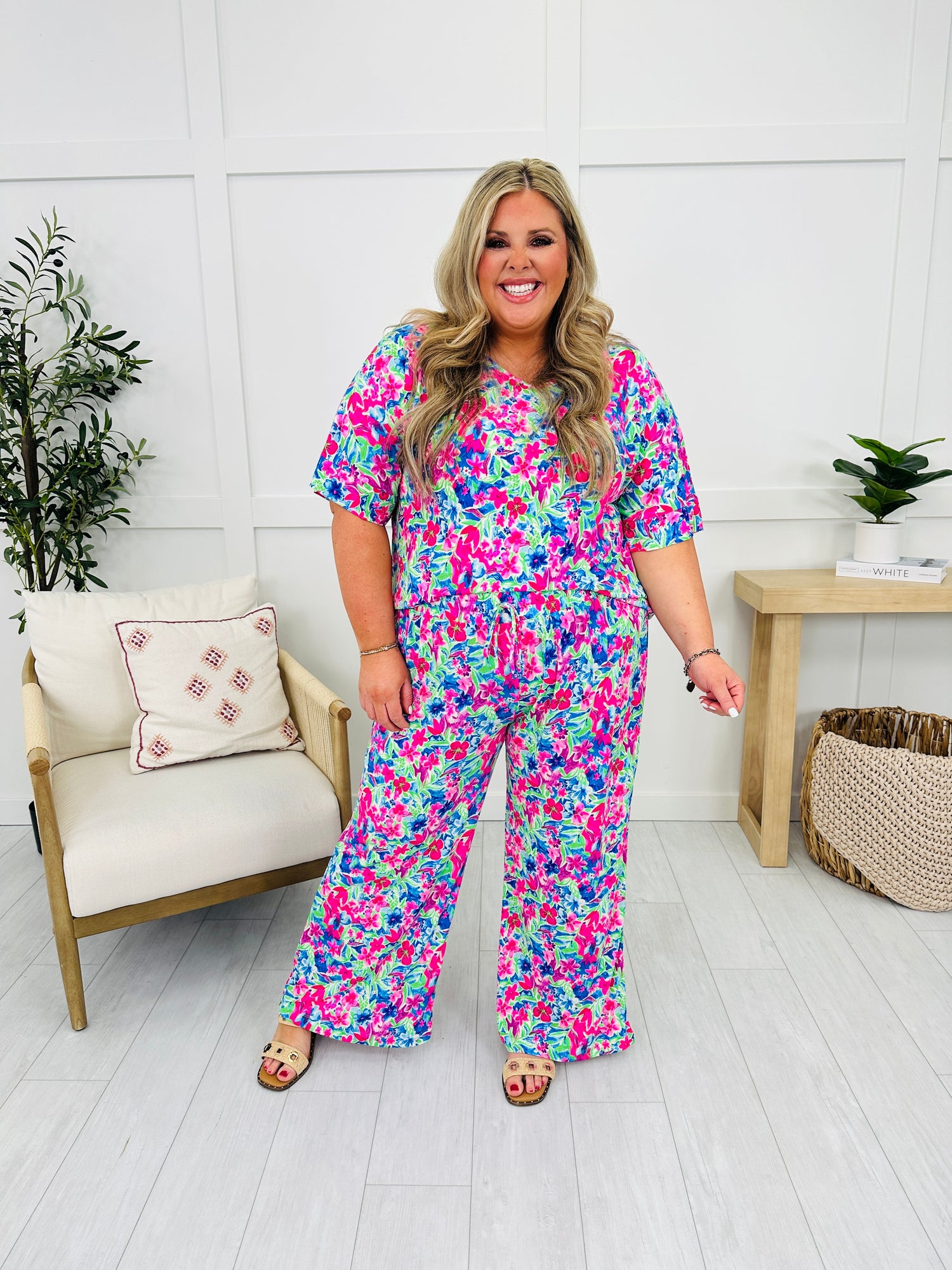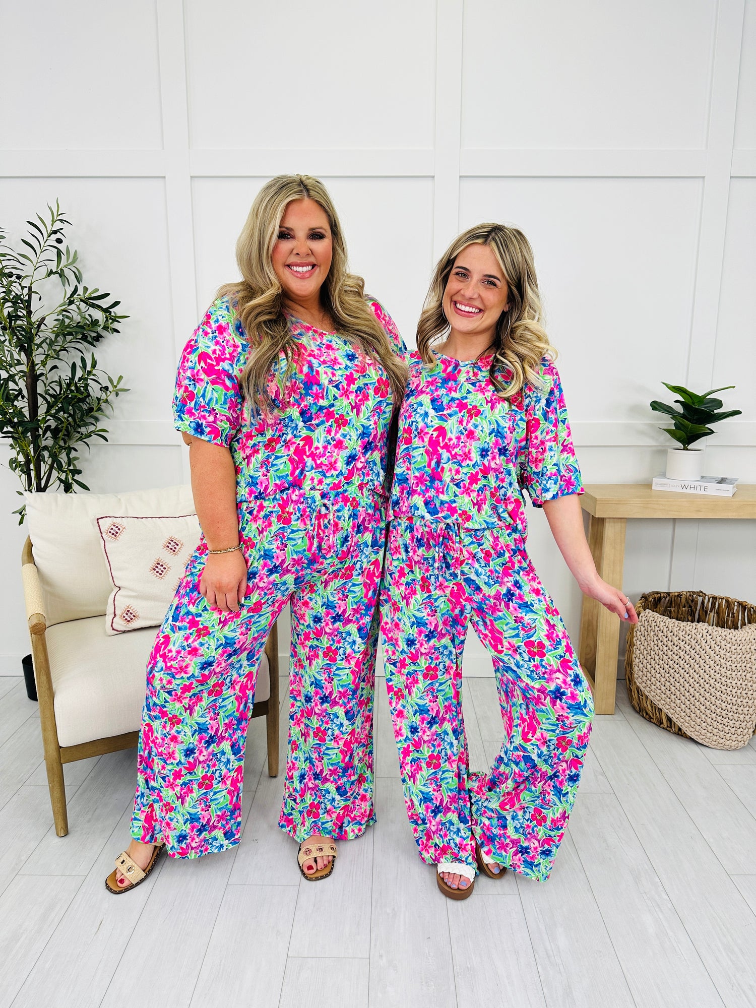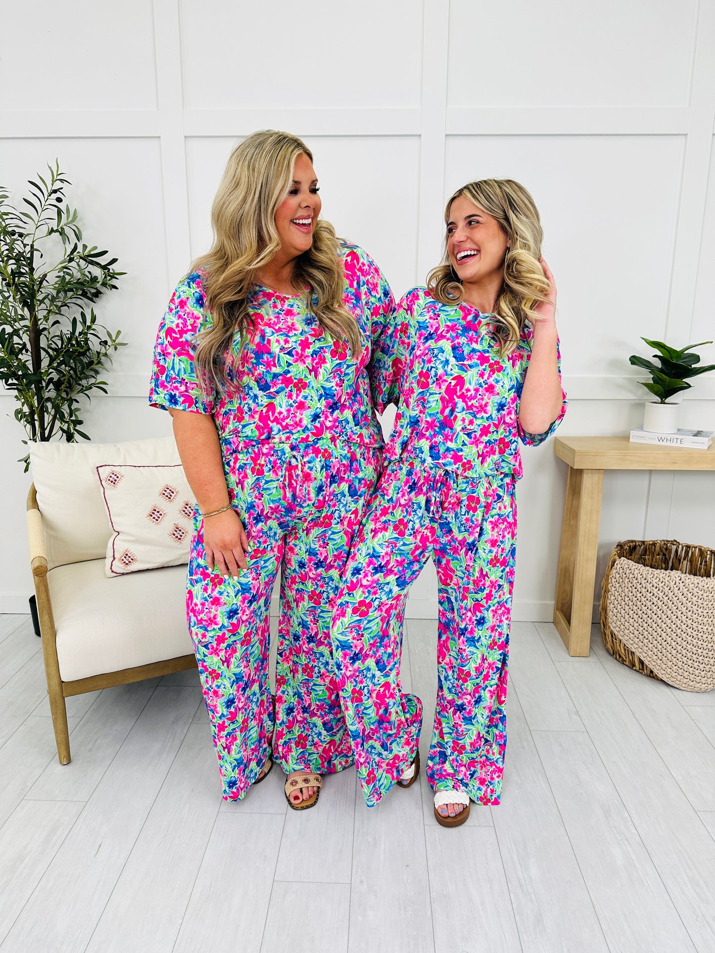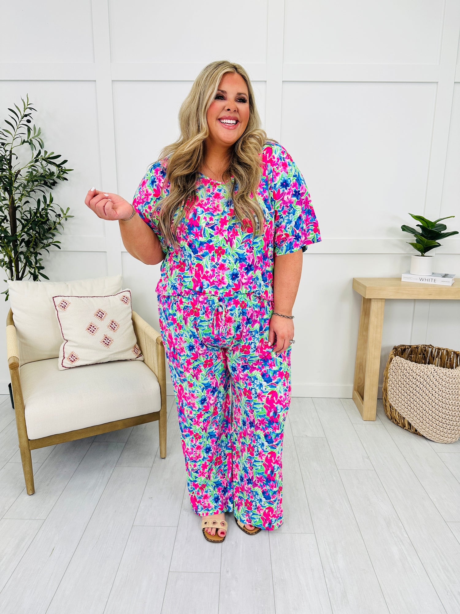 This printed set is the perfect set to wear when it's warm outside. This cool to the touch, dreamy material feels so amazing and it is 100% wrinkle free, so you can get up and go! The elastic waist-band and functional drawstring give you the perfect fit!