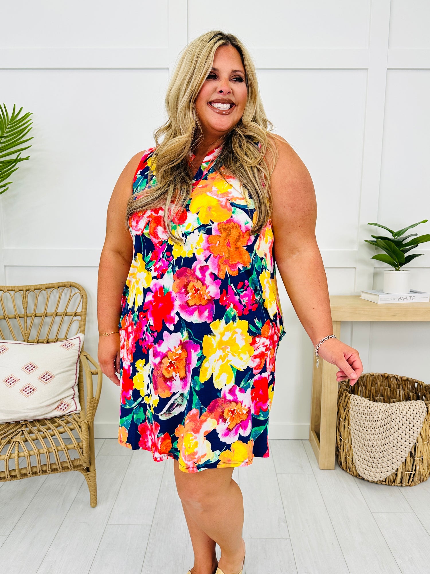 The Palms and Plans dress is officially our best selling dress this season. It's made form our best selling wrinkle material, which is cool to the touch and perfect for warmer weather! Our customers rave about this amazing material! This dress is flowy and flattering on every single body type. Did we mention it has pockets? This dress is so versatile, too! You can dress it up to brunch, church, wedding showers, and other events, and because it is wrinkle free, you can also throw it in bag and use it has a bathing suit cover up.