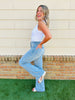 You will want to wear these jeans anywhere and everywhere!  Wide leg jeans are trending everywhere this season and these will be your new favorite pair; we promise! These jeans feature a magical tummy control panel that is going to make you feel so confident! These jeans have zero holes and zero distressing so they can be worn from work to weekend to everywhere in between.
