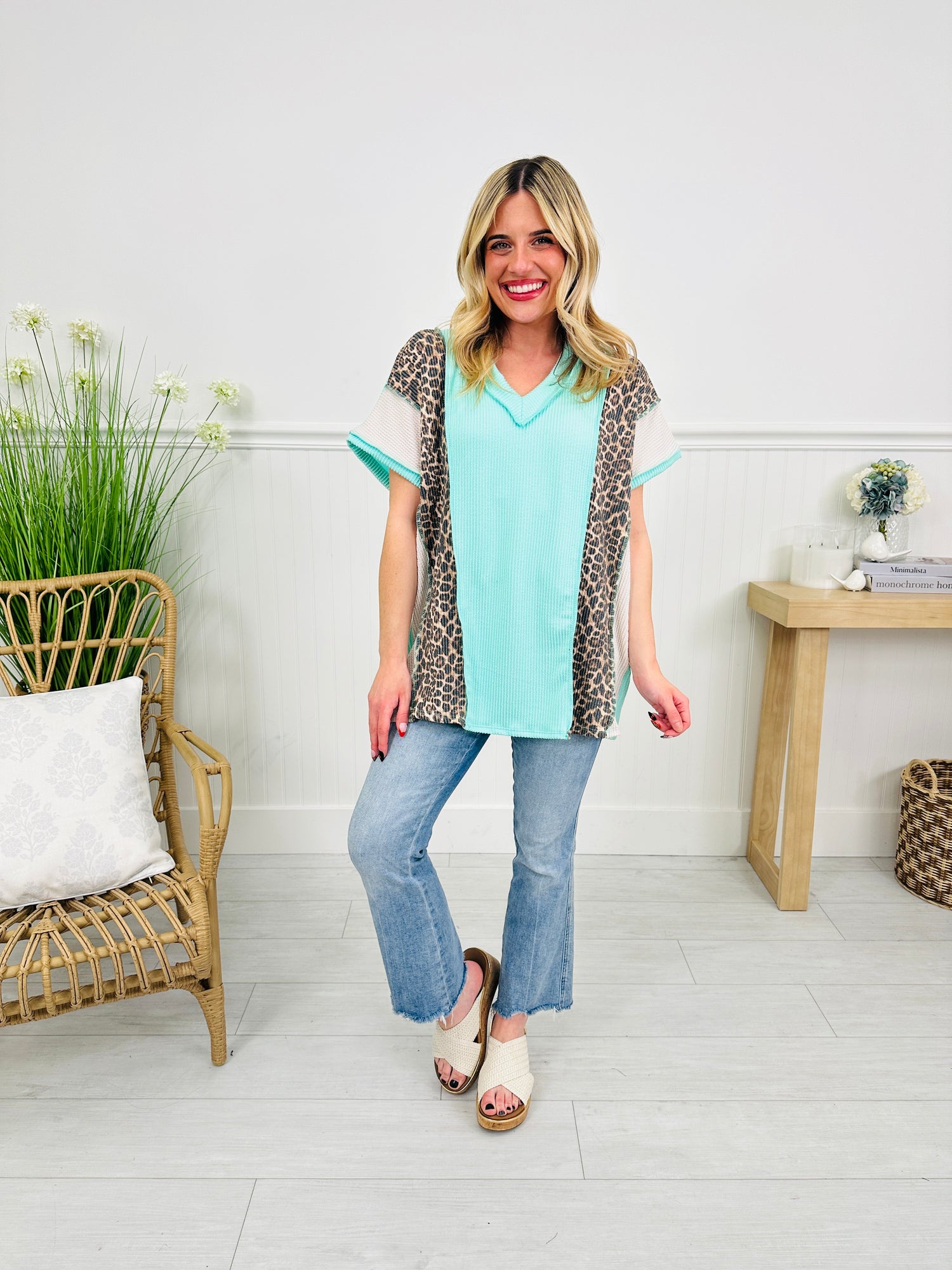 This new pre-spring arrival is the perfect mix of comfort and edge for the season ahead. Made from our best selling raised rib material that our customers rave about, this top features a soft, stretchy feel with a flowy, flattering fit that’s easy to wear all day long. The leopard detailing adds just the right amount of boldness, giving this piece a fun, confident look without feeling overdone.