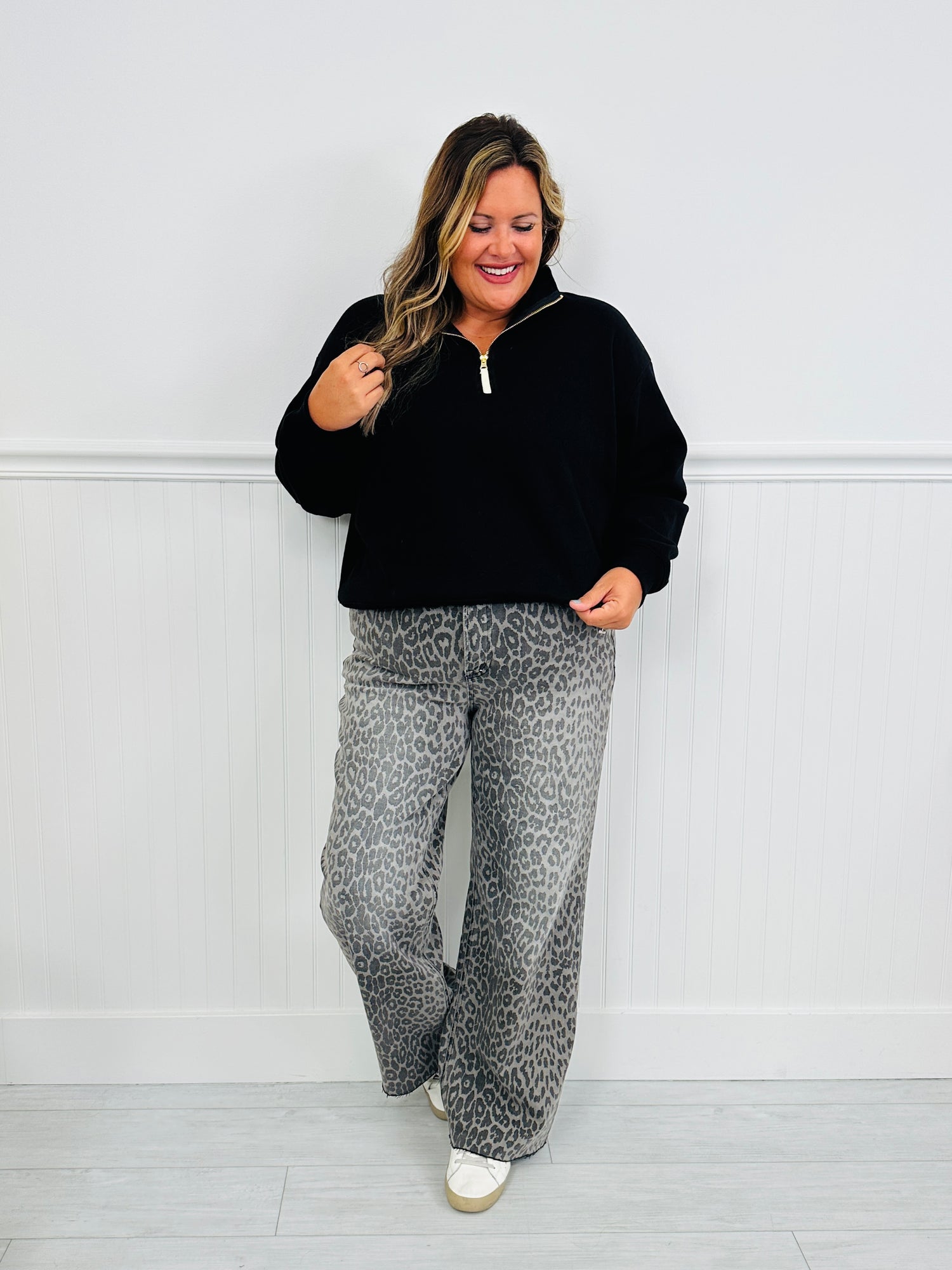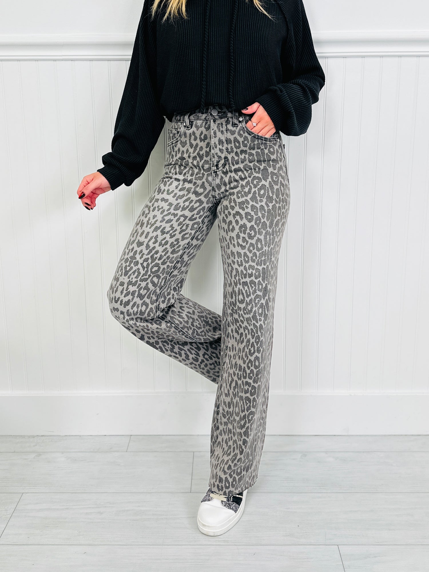 Your wardrobe needs a little wild and these new jeans are a must have this fall. There's nothing more trendy than a wide leg and leopard combination and we love this grey leopard print that looks amazing with every black top in your wardrobe. They feature a tummy control panel that is going to suck you in and slim you out for an amazing boost of confidence. These jeans are soft, stretchy, and so comfortable.