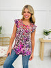 This top is bursting with charm, thanks to its intricate floral embroidery and fun animal print patterning. The ruffle cap sleeves add a flirty touch, while the subtly pleated bodice creates a flattering and easygoing silhouette. Breezy and bold, it’s the perfect statement piece for days when you want comfort without compromising style.